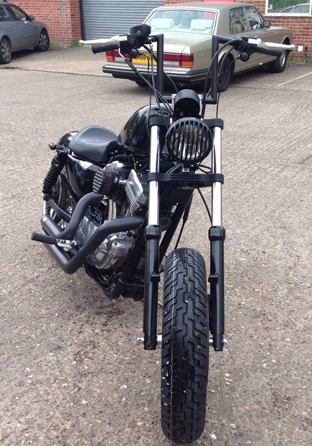 These Harley Davidson Wide yokes were developed for a 2005 sportster but will fit other years and models but may require a stem change that we can do. We have designed these with a blind top face so these come with screw in fork adaptors that screw into the stanchions and then into the top yoke, once screwed in, they are locked off by the bottom yoke clamp bolt. These have been designed & manufactured in house from high strength aluminium and are available in a high polished finish, rumbled for a cast rougher look or gloss black anodised - matt black anodised for an additional charge (Anodising will also have a longer lead time as we only hold stock of polished).