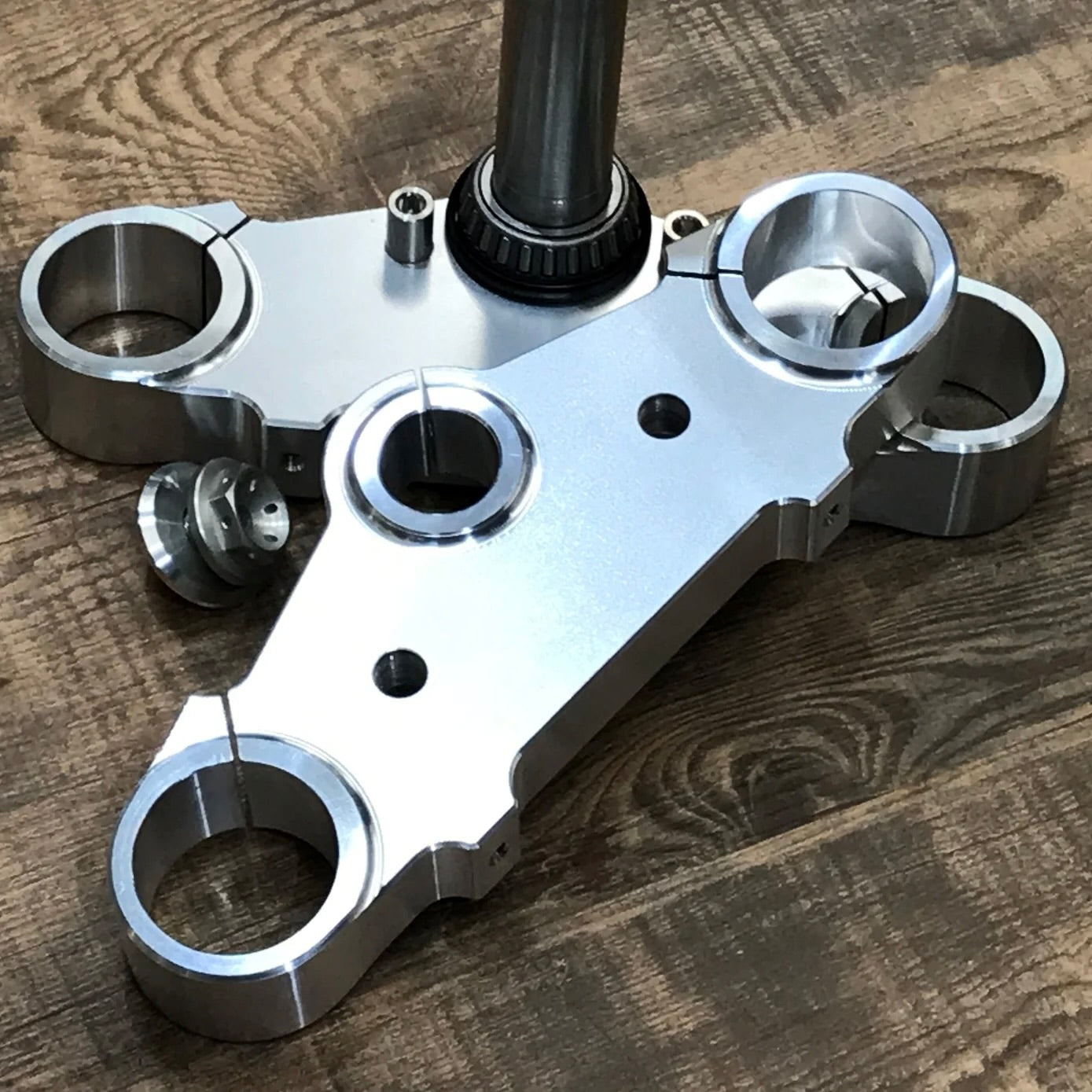 We have designed these yokes similar to those used by Kenny Roberts on his AMA flat track bike, our design can be manufactured to suit your requirements please see our data sheets for the information we would require, you can either send us your old yokes so we can take sizes and stop positions from them or print out data sheet to fill out with your requirements.