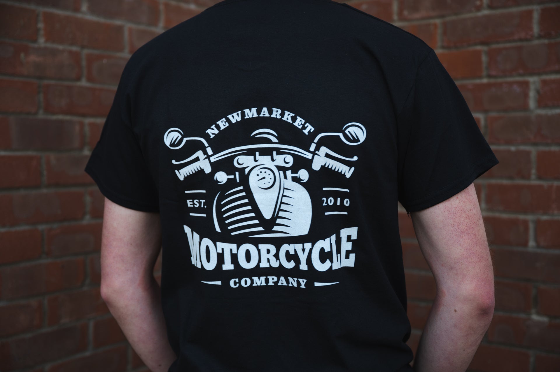 Fruit of the Loom Tee with our original Harley distressed bike design on the back of the grey tee from @andyisatwork and our NMC design on the back of the black tee, available in M thru XXL