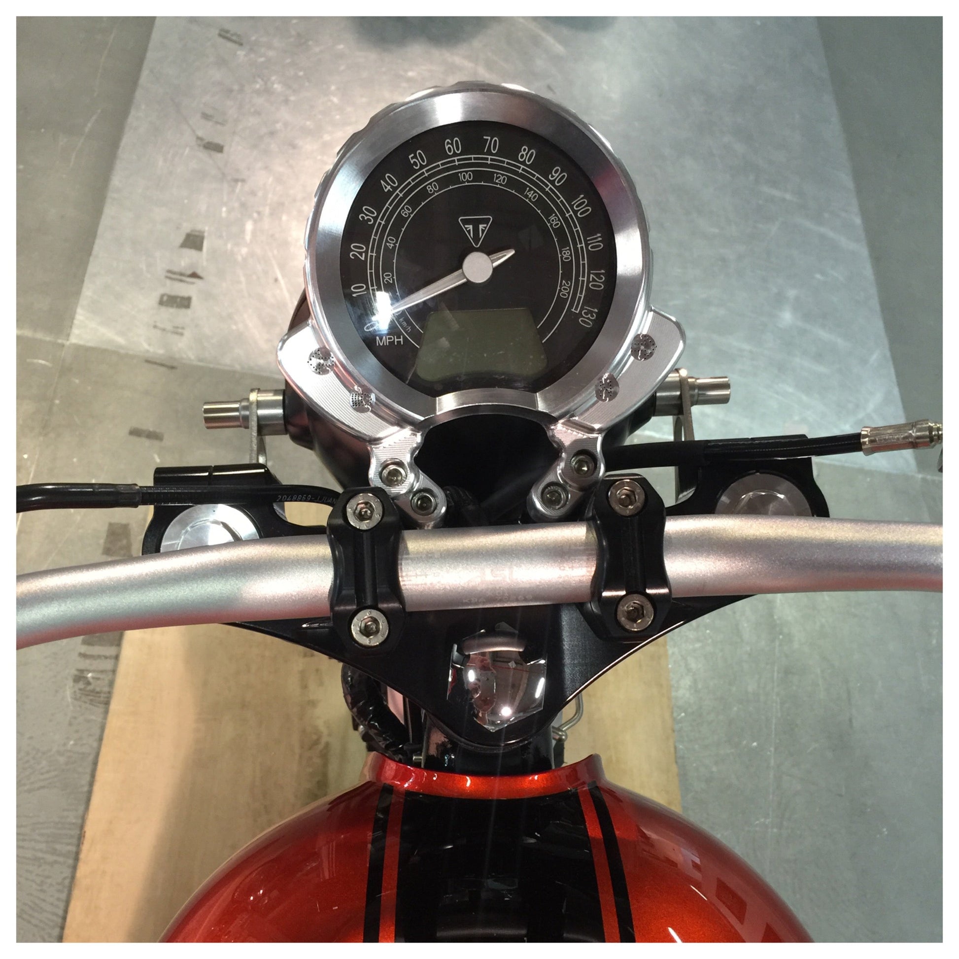 The kit includes aluminium top & bottom yoke, aluminium clock surround/mount, aluminium front wheel spacers, aluminium disc spacer, stainless steel disc bolts & fork bolts, machined in house - the yokes are supplied in a standard machined finish but anodising, powdercoat or polished finishes are available at further cost which will quoted on purchase if required.