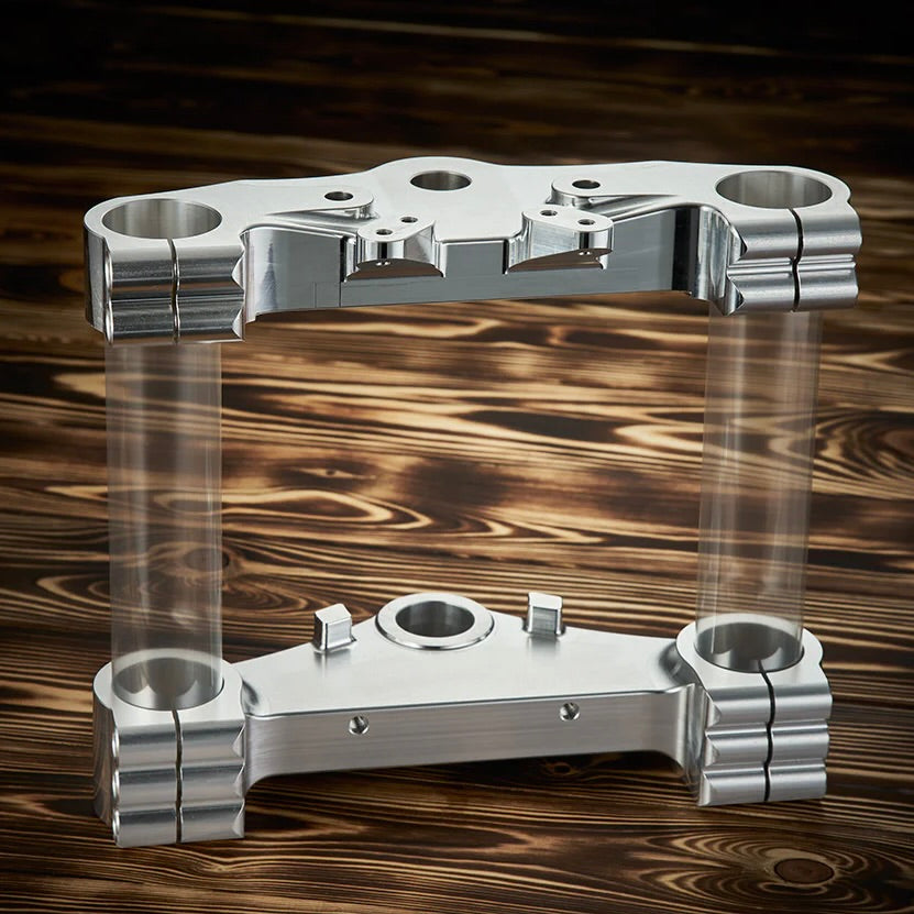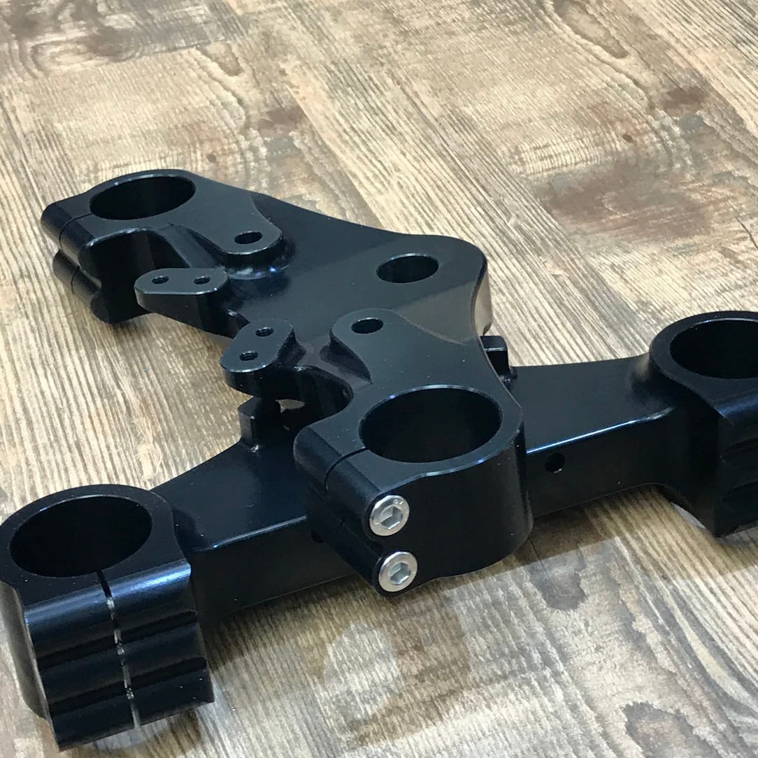This kit includes the top & bottom aluminuim yokes, aluminium front wheel spacers, aluminium front brake spacer & stainless steel front spindle with stainless steel bolts in the yokes & stainless steel disc bolts, machining done in house - the yokes are supplied in a standard machined finish but anodising, powdercoat or polished finishes are available at further cost which will quoted on purchase if required.